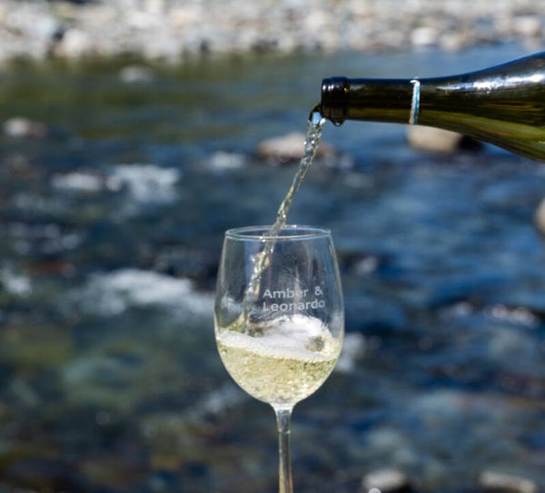 - 2 kristallen wijnglazen met gepersonaliseerde gravure op elk glas